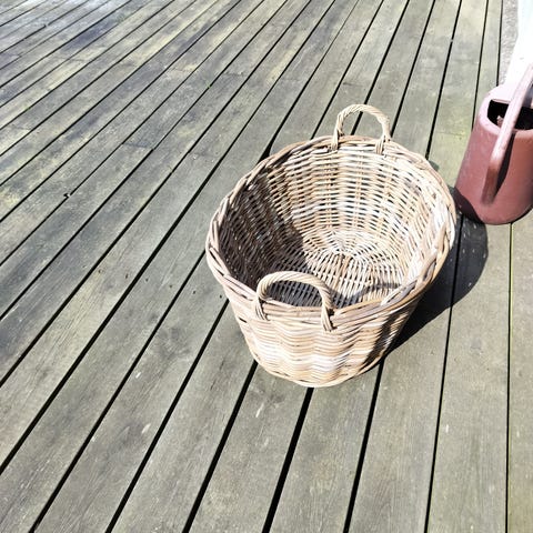 Helt ny håndflettet kurv i bambus med håndtag til opbevaring eller plante.