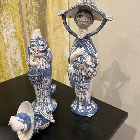 De smukke Björn Wiinblad sommer og forår figurer! Måler ca 19 cm i højde. Sommer figuren har 2 hak i hat. Tag dem begge for kun 325,- #wiinblad #genbrugsguldsælges #björnwiinblad #retroshopbrande