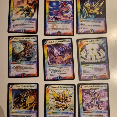 Duel Masters samle kort 13 stk's, fra 2004-2006, som er sjældne kort nogle med glimmer der er bla en liste over kortene herunder.