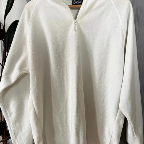 Ami trøje til mænd i størrelse L. Strikken er hvid og fremstillet i uld. Modellen har rund hals med ribkant samt ribkant ved ærmer og forneden. Foran på brystet er der et rødt hjerte- og A-motiv. Velegnet som varm hverdagstrøje eller lag-på-lag over en T-shirt eller skjorte.