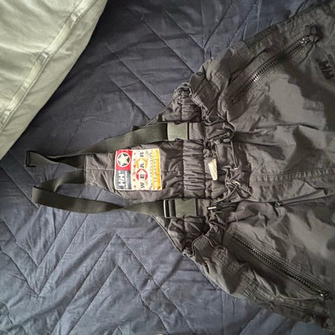 Skibukserne er turkis med lidt sort, har fire forskellige lommer og er med diverse anvendelige funktioner. De har kun været brugt på en skiferie, så de er i pæn stand men har enkelte pletter (se de sidste tre billeder).