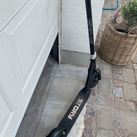 Story løbehjul i sort. Modellen har styr med håndbremse, store hjul for og bag samt skridsikkert trædebræt. Egnet til kørsel på asfalt og lignende faste underlag. Velegnet til både børn og voksne afhængigt af højde og vægtbegrænsning fra producenten.