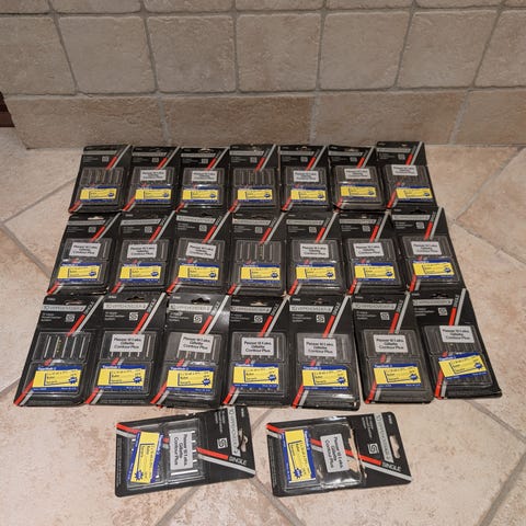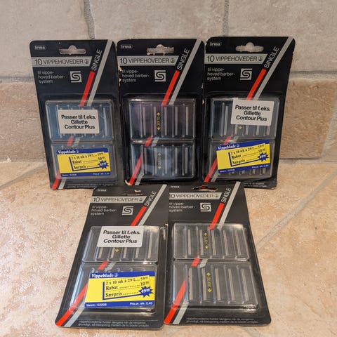 Der er i alt 7 pakker med hver 5 blade i. Altså hele 35 barberblade.