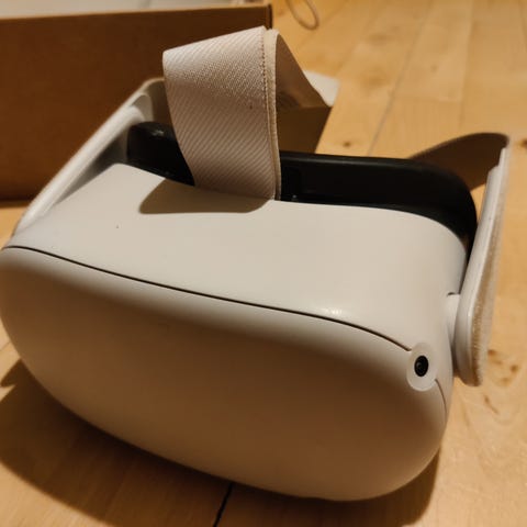 Meta Quest 2 VR-headset i hvid. Sættet består af VR-headset samt to håndcontrollere i matchende farve. Headsettet har indbygget rem og polstret ansigtsdel. Systemet er trådløst og kan anvendes til virtual reality-spil og -oplevelser. Alt følger med skriv hvis i har nogle spørgsmål😊