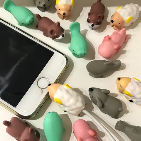 Kabelopruller til opladerkabel gul og lyserød plastik