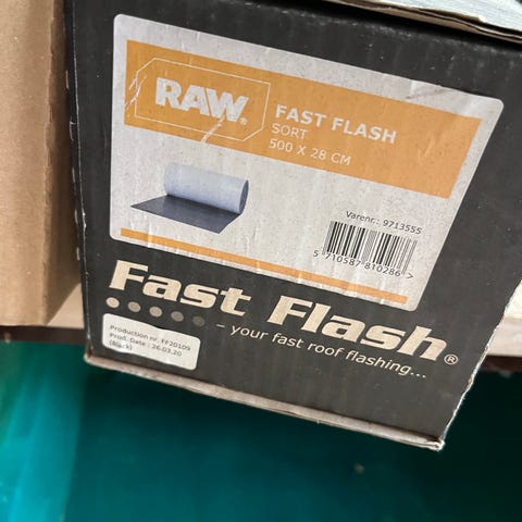 2 ruller RAW Fast Flash taginddækning. Produktet er en fleksibel inddækning til tag mm. 28*500cm teglrød