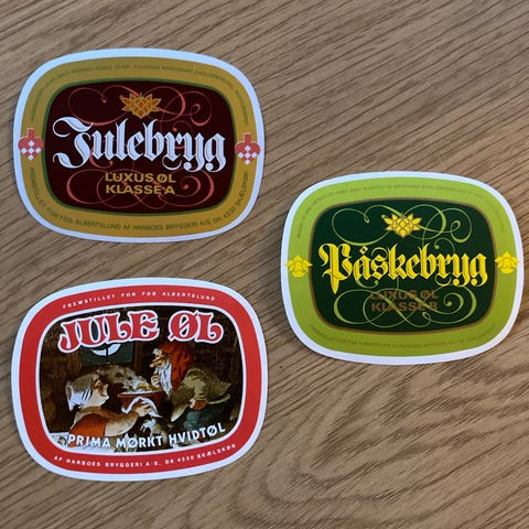 Flot rød/guld farvekombination med klassisk typografi og dekorative detaljer – en rigtig fin etiket til samleren af danske øl- og bryggerietiketter.