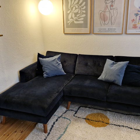 Sofa i grøn velour. Kommer fra et røgfrit og dyrefrit hjem. Er i pæn stand. Kan afhentes på Amager.