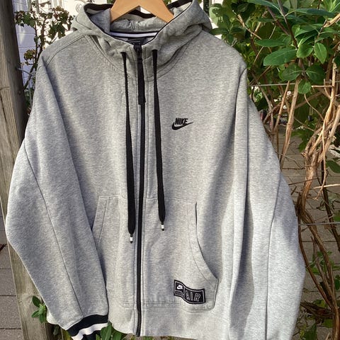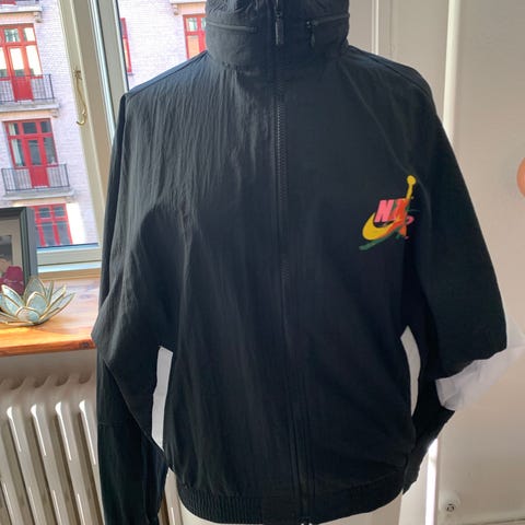 Nike Brooklyn Nets basketballjakke unisex i størrelse M. Jakken er hvid med sorte ærmer og detaljer samt Brooklyn Nets-logo på brystet. Foran er der gennemgående lynlås og sidelommer med lynlås. Jakken er egnet til basketball og anden sport eller som let overjakke til hverdagsbrug.
