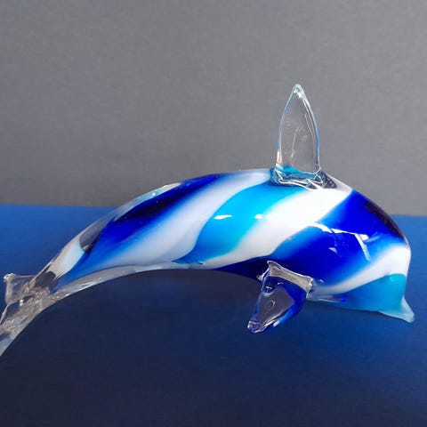Ældre Retro Delfin skulptur, Delfin med masser af farver kitsch retro figur