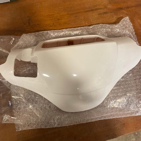 Skjold der passer til knallerter fra Thansen. Knallerten på billedet er solgt – den er kun vist som reference for at vise, at skjoldet passer til den type knallert.