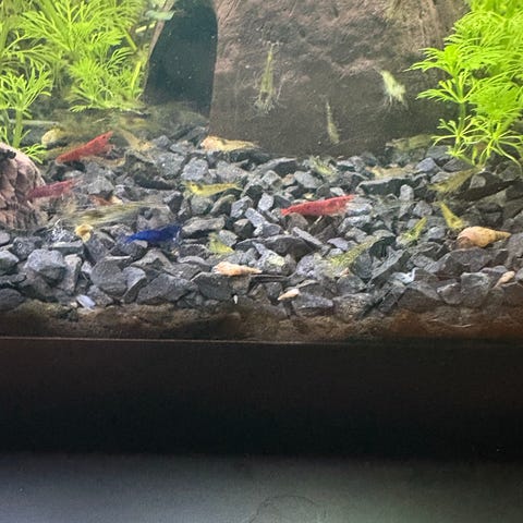 Vores akvarie har rigtig mange rejer lige nu og rigtig mange forskellige slags rejer.