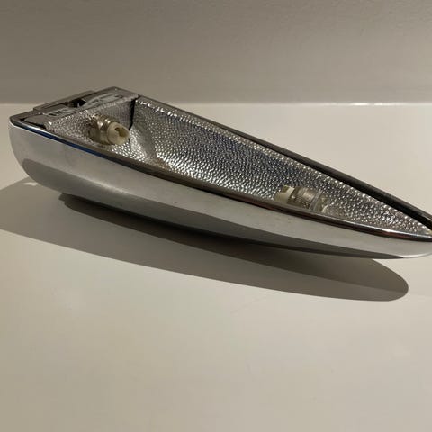 Halvrund metalskærm i creme/offwhite.