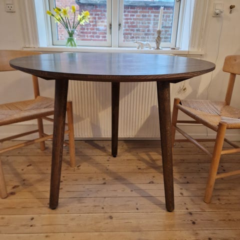 Rundt bord 90cm med 4 ben, lavet af massiv egetræ.
