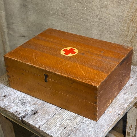 En klassisk sykasse i lyst træ med slank design og med håndtag. ,Afhentes i:,Røde Kors Sorø (335),Bemærk at mail, chat og beskeder ikke besvares, og varen skal købes på knappen "Gå til varen"