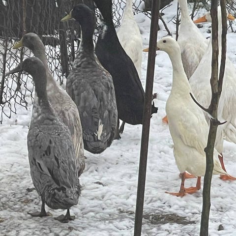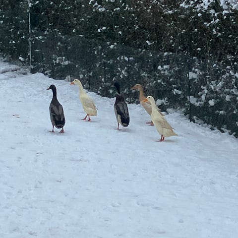 3 løbeænder sælges samlet, ubeslægtede 1 broget andrik og 2 lyse ænder 1 vildfarvet med striber i hovedet og en creame/rødlig. Alle fra 2025.