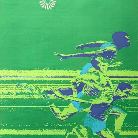 Meget smuk original plakat, illustreret af Otl Aicher til forskellige sportsgrene. Denne plakat vedrører kano-kajak-arrangementet. En sjælden og udsolgt plakat.