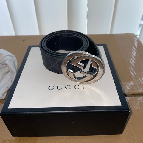 GUCCI bælte, model Réversible 1973, i sort og brun læder med gyldent GG-monogramspænde, længde 110 cm, bredde 4 cm, lavet i Italien, størrelse 95, i meget god stand med mindre tegn på brug og leveres med dust bag. Klik på den blå "gå til varen" knap, for at købe eller byde på denne vare. Den samlede pris vil blive vist inden du afgiver dit bud.