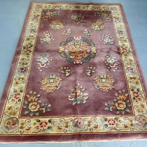Han præsenterer et traditionelt blomster-mønster med forskellige blomsterlignende florale drageagtige motiver. I midten vises et medalion med en drage.