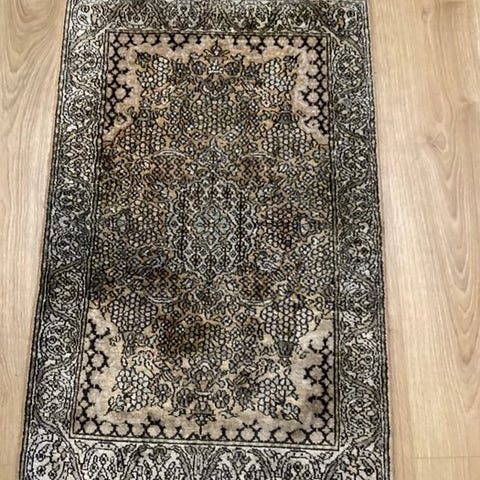 Den er 2,45 x 3,45 m og omhyggeligt knyttet.