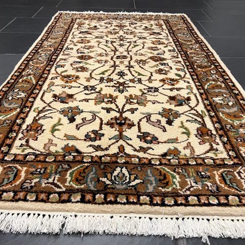 Oprindelse Indien; håndknyttet orientalsk tæppe fra Tabriz, mål 170×90 cm, uld på bomuld, midten af det 20. århundrede, i god stand. Klik på den blå "gå til varen" knap, for at købe eller byde på denne vare. Den samlede pris vil blive vist inden du afgiver dit bud.