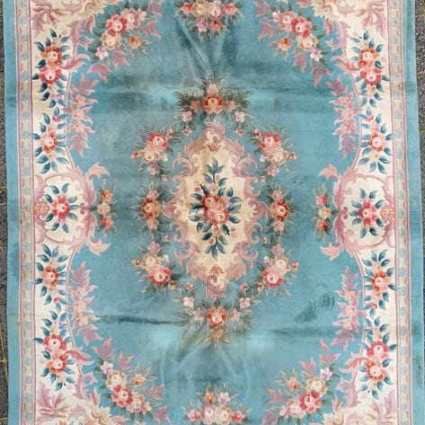 Tæppet er blevet rengjort, men der er nogle pletter (se venligst billederne)
