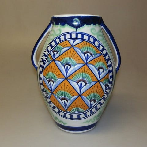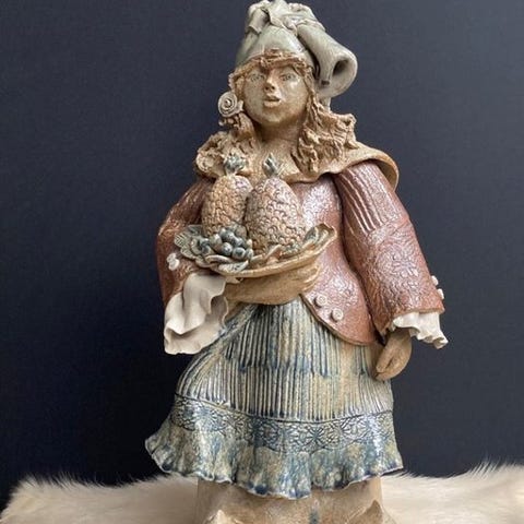 Ritratto Femminile er en flerfarvet maiolika med metallisk glans af Riccardo Gatti (Bottega Gatti), 26 cm høj, 8 cm bred, 5 cm dyb, 363 g, håndsigneret, Italien, Art Déco, i fremragende stand. Klik på den blå "gå til varen" knap, for at købe eller byde på denne vare. Den samlede pris vil blive vist inden du afgiver dit bud.
