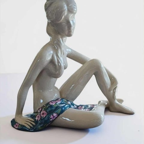 Skulptur, Statue Femme au bain - Art Deco - Céramique 21 cm - 18 cm - Keramik