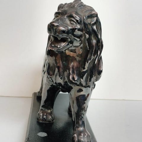 Stor terracotta- eller keramikskulptur kaldet Haan fra Italien, 28 cm bred, 39 cm høj og 39 cm dyb, vægt 2 kg, underskrevet og i fremragende stand. Klik på den blå "gå til varen" knap, for at købe eller byde på denne vare. Den samlede pris vil blive vist inden du afgiver dit bud.