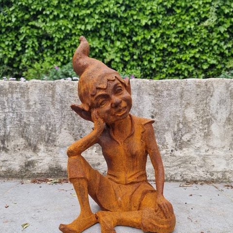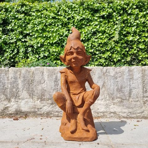 En drømmende havegnom, lavet af støbejern, i god brugt stand med mindre tegn på alderdom og pletter, 40 cm høj, 24 cm bred og 18 cm dyb, oprindelse Europa. Klik på den blå "gå til varen" knap, for at købe eller byde på denne vare. Den samlede pris vil blive vist inden du afgiver dit bud.