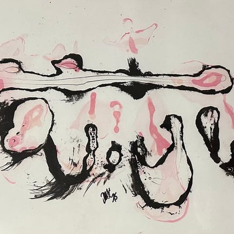 Dave Schweitzer (1972), The Monthly Battle, 2018, originalt mixed media på papir (A2, ca. 42 × 59,4 cm), liggende, håndsigneret på bagsiden, i fremragende stand, 2 kg, pink og gule pop art med naive figurative elementer, Belgien. Klik på den blå "gå til varen" knap, for at købe eller byde på denne vare. Den samlede pris vil blive vist inden du afgiver dit bud.