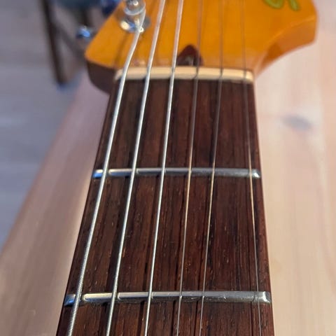 Guitaren er udstyret med en ny polstret etui som vist på