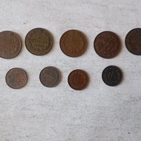 Serie komplet af 5 mønter på 1 lira heraldisk eller savojardisk Vitt. Em. III år ikke almindelig 1901 NC 1902 – år sjældent 1905-1906 og 1907 velbevaret.