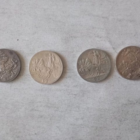 En komplet serie af fem argentiske 1-lira mønter fra Vittorio Emanuele III araldisk/Sabaudisk fra Italien, årstal 1901, 1902, 1905, 1906 og 1907, ikke graderet. Klik på den blå "gå til varen" knap, for at købe eller byde på denne vare. Den samlede pris vil blive vist inden du afgiver dit bud.