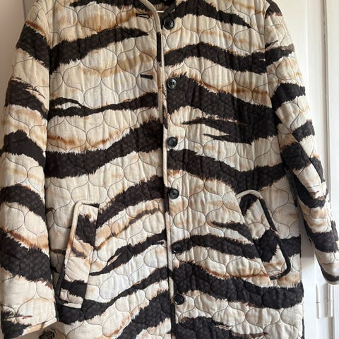 Ina Copenhagen quiltet jakke i råhvid broderet med søde blomster. Str L. Brugt få gange.
