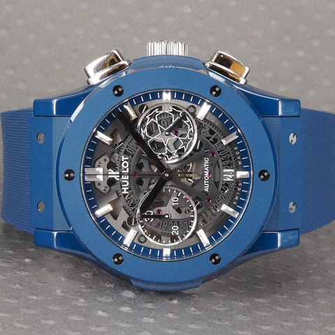 Hublot Classic Fusion Orlinski Blue Ceramic, reference 550.ES.5100.RX.ORL21, fremstillet efter 2020, automatisk HUB1100-bevægelse (Sellita SW300-1a), 41 mm keramisk blå kasse og blå urskive, blå gummirem, safirglas, originalæske, papirer og garanti, vandtæt til 5 atm. Klik på den blå "gå til varen" knap, for at købe eller byde på denne vare. Den samlede pris vil blive vist inden du afgiver dit bud.
