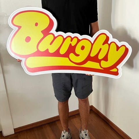 LED-lys skilt fremstillet ved 3D-printning og lasergravering.