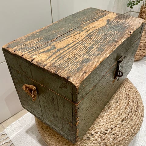 Antikk kuffert fra Italien, lavet af trykt karton, håndlavet, ca. 1940–1950, mål: bredde 95 cm, højde 41 cm, dybde 35 cm, i god brugt stand med små aldersmærker og pletter. Klik på den blå "gå til varen" knap, for at købe eller byde på denne vare. Den samlede pris vil blive vist inden du afgiver dit bud.
