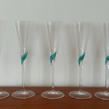 Et sæt på 9 krystal champagneglas i fremragende stand.