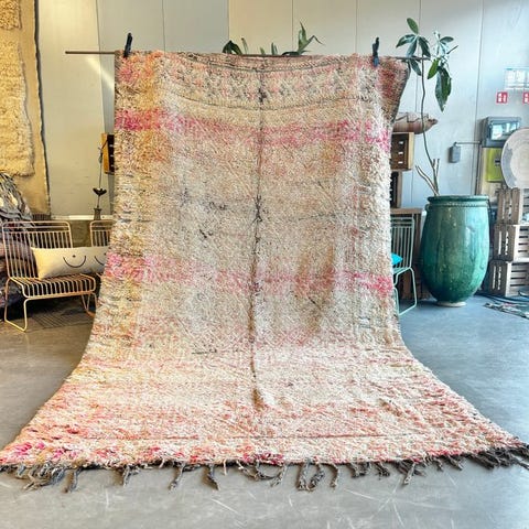 Berber-tæpper er en traditionel håndværkskunst, hvor hvert mønster fortæller en historie og afspejler stammeidentitet. Lyse farver fås ofte fra naturlige farvestoffer, såsom indigo til blå eller karmosin til rød. Disse tæpper blev engang vævet i hånden af Berber-kvinder, ofte til familiens brug eller som medgift. Oprindelse: Marokko eller Algeriet (hovedsageligt)