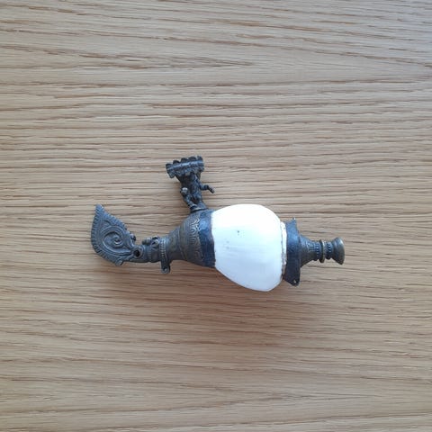 Snoren/ophænget til gong’en / disken er knækket (efter fotos er taget), så der skal sættes ny snor i.