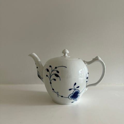 Royal Copenhagen LUX tekande i porcelæn. Tekanden er hvid med håndmalet blå dekoration og rillet overflade. Velegnet til servering af te ved borddækning i køkken eller spisestue.
