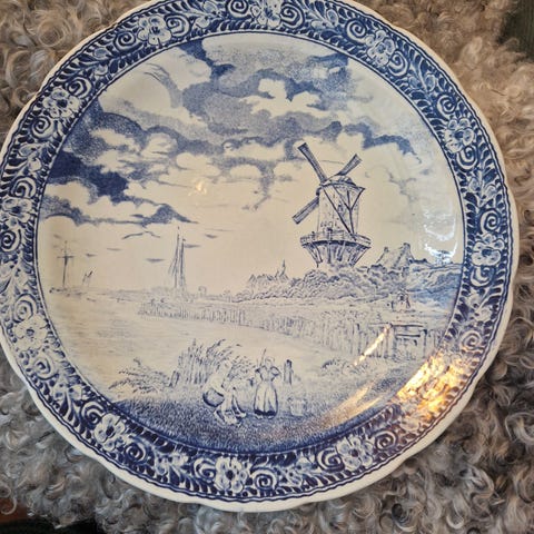 Rigtigt fint porcelænsfad med mulighed for at hænge på væggen.