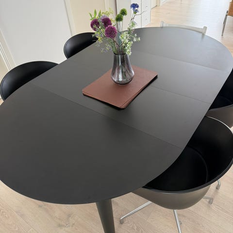 Rundt spisebord i olieret egefiner med udtræk