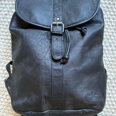 Gusti Leder Studio rygsæk i brun læder til unisex brug. Rygsækken har et stort hovedrum med lynlås og en frontlomme med spænde. Bagsiden og skulderstropperne er delvist i tekstil med læderdetaljer. Egnet til daglig brug, f.eks. til skole, arbejde eller fritid, hvor der er behov for at medbringe personlige ejendele på ryggen.