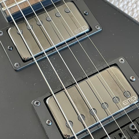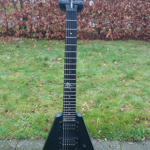 Klasse guitar sælges!! Der er tale om Jackson flying v. Den har 24 jumbo sized bånd, slank hurtig hals, Floyd Rose 1000, volume knap til hver pickup, og så har jeg opgraderet den med James Hetfield signatur EMG pickupsæt. Den lyder og spiller fantastisk!!! Den er som ny og har intet der minder om ridser, hakker eller bare generelt spor af brug.