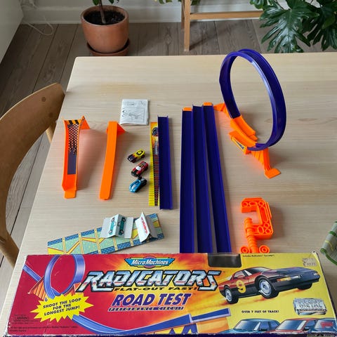 Ren 90'er nostalgi. Micro Machines, 12 by plader, masse vejbaner og en masse biler, busser, lastbiler, tanks, fly rumskibe m.m. Masse lækkert lir, meget af det er rigtig god stand, andet gennemleget og slidt :)