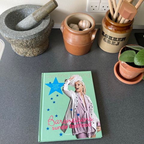 Bogen: “Baronessen går i køkkenet” af Caroline Fleming.