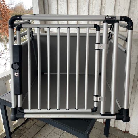 Hundebur til bil fra Bech Trade. Har lidt ridser i bunden af buret, men fejler ellers ikke noget. Skal hentes i Trige.