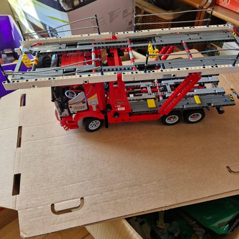 LEGO Technic lastbil med anhænger og container. Denne model er udviklet i samarbejde med Mack® Trucks Inc. og indeholder en lang række realistiske tekniske detaljer og funktioner, bl.a. styring på forakslen, baghjulstræk og 6-cylindret rækkemotor med fungerende stempler og roterende køleblæser. Den aftagelige anhænger har udtrækkelige støtteben, fungerende støttefødder, synkroniserede kranarme med mulighed for sidelæsning samt en container, der kan læsses og har låsbare døre, mens det tilgængelige førerhus har døre, der kan åbnes, justerbare sæder, detaljeret instrumentbræt, rat, solskærm og en køjeseng.